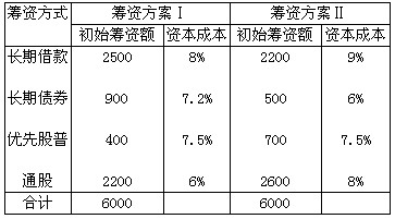 某物流公司初创时需要资本总额为6000万元,有两个筹资方案可供选择,有关资料经测算形成表,如下: [*] 试根据综合资本成本,确定企业最佳筹资组合方案。